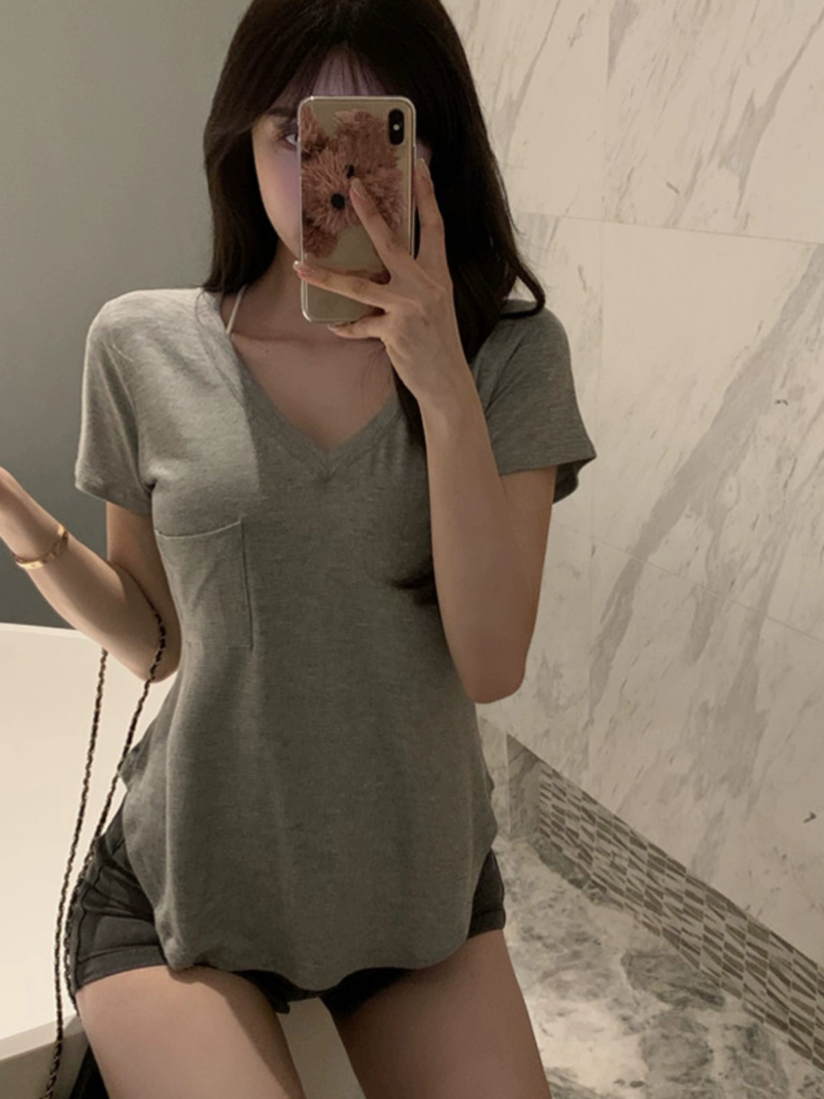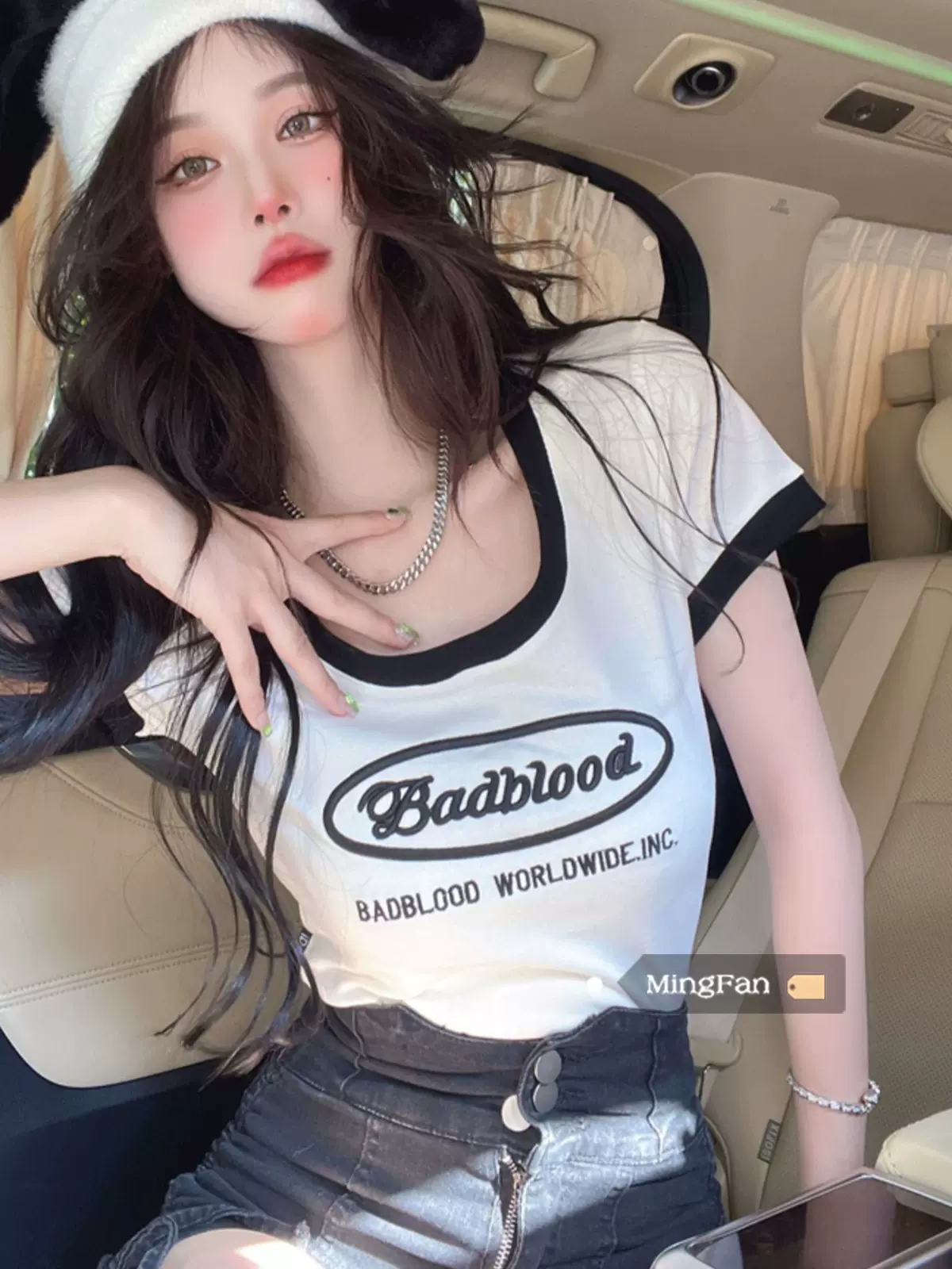 辣妹纯欲短袖t恤女2023夏季新款白色莫代尔正肩v领上衣女锁骨体恤