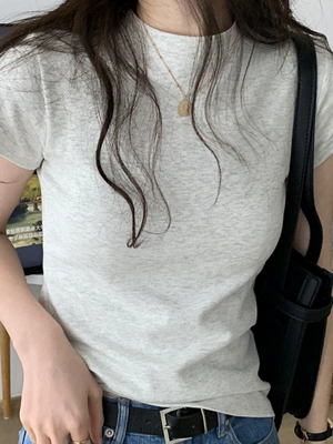 正肩短袖t恤女黑色夏季辣妹圆领叠穿早秋打底衫体恤修身内搭上衣