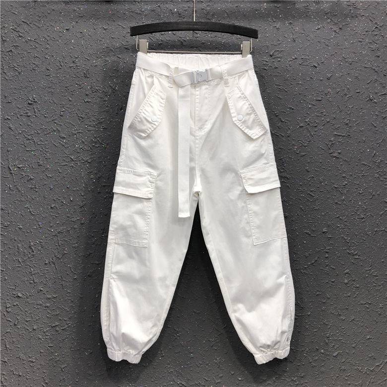 白色女夏季多口袋九分工装裤宽松显瘦束脚韩版哈伦裤子女