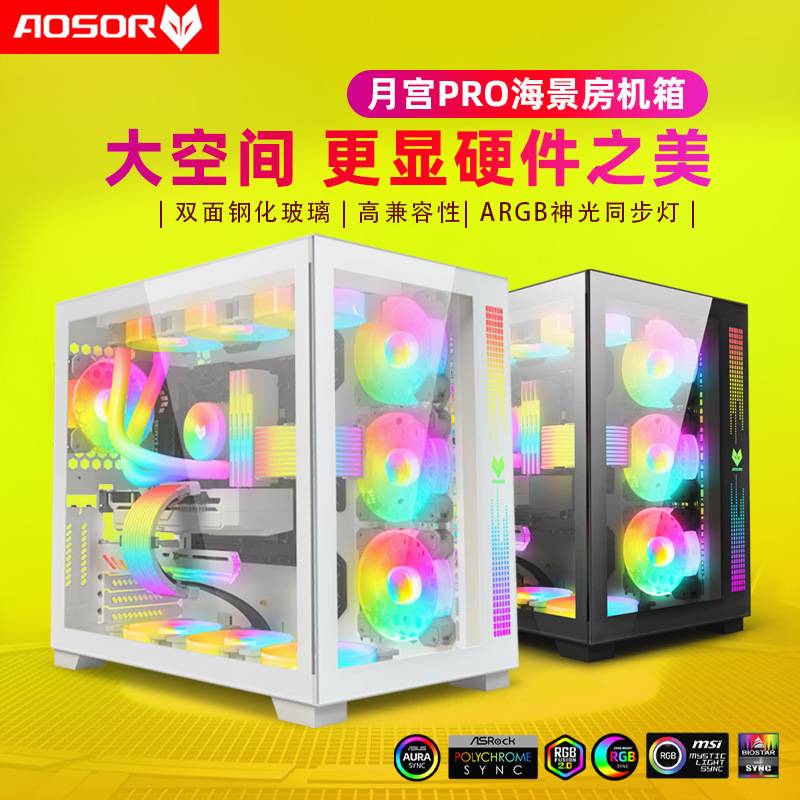 海景房机箱 台式机电脑白色黑色ATX电竞游戏静音玻璃侧透主机箱