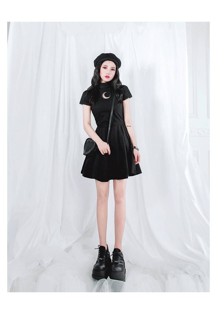 包邮硬妹暗黑朋克个性小黑裙月亮网纱镂空洛丽塔软妹连衣裙酷