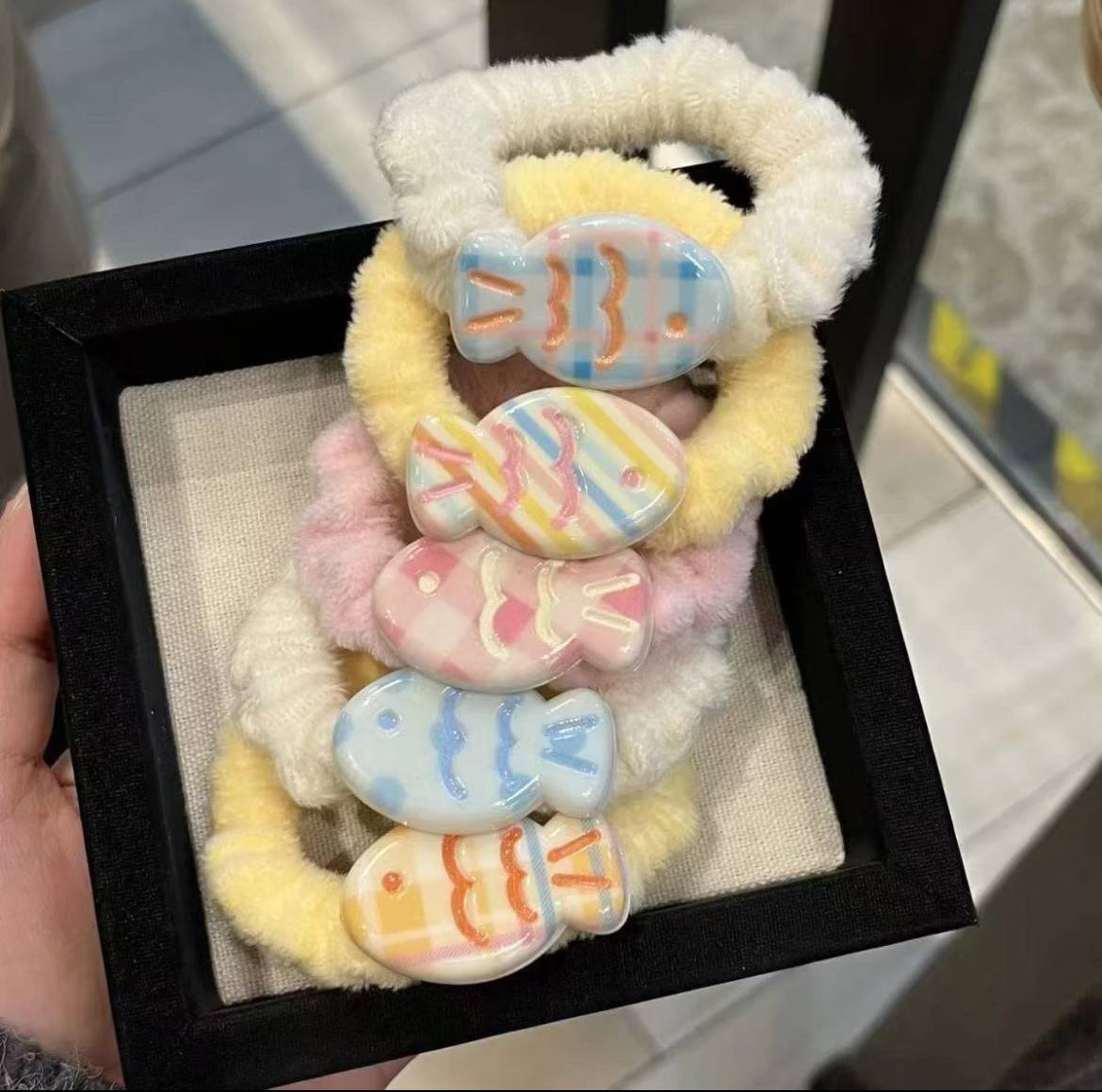抖音货源可爱奶油小鱼发圈布艺绒布发绳简约扎头发彩色鱼皮筋甜美