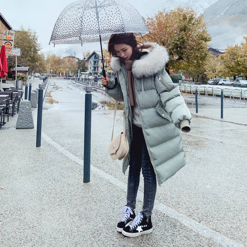 欧洲站2019冬装新款时尚爆款大毛领羽绒服女中长款加厚大衣外套潮
