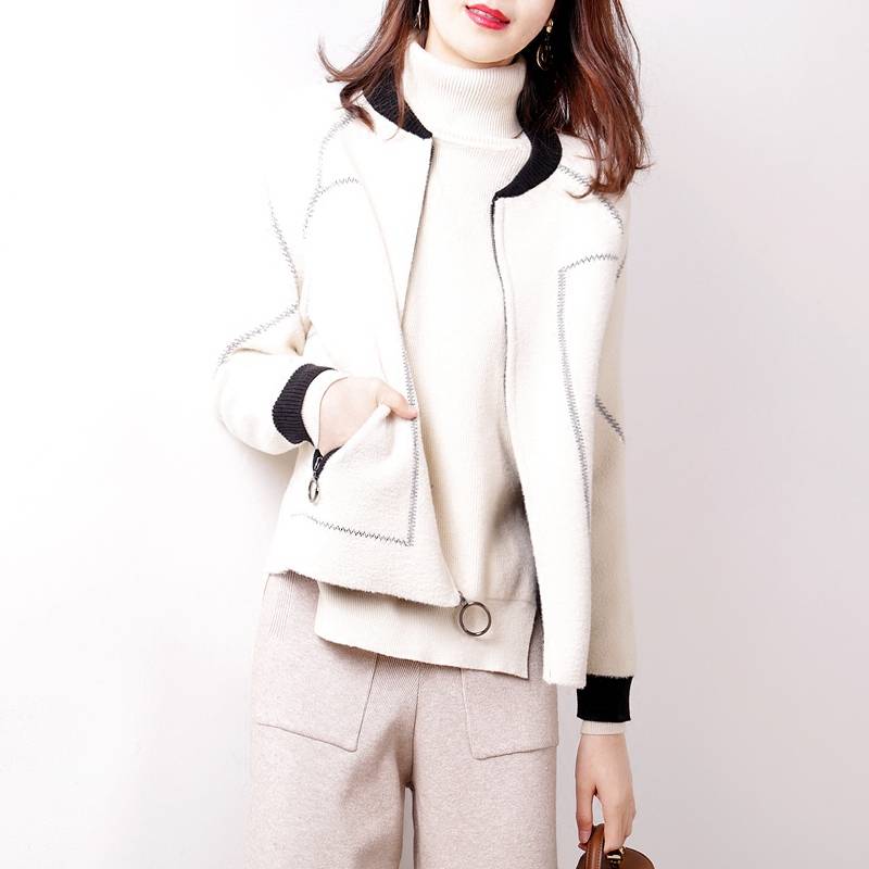 短外套女秋冬2020新款百搭韩版宽松休闲简约夹克加厚羊毛针织开衫