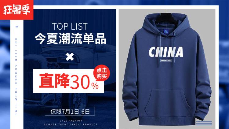连帽卫衣男春秋冬大码宽松国潮中国风大红色班服定制加绒外套