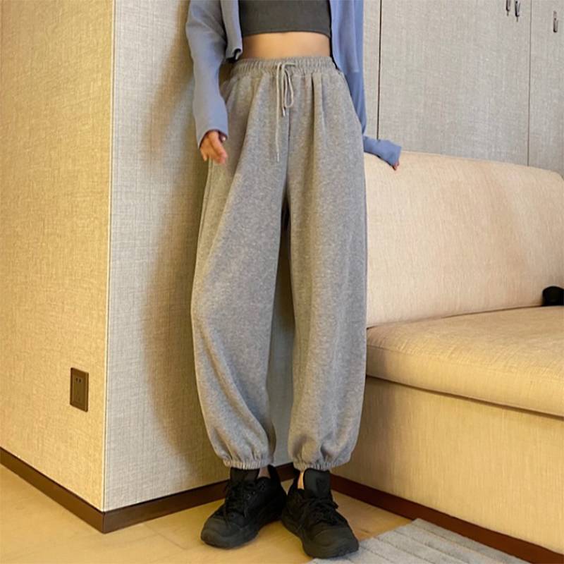 超火cec灰色运动裤女春秋宽松卫裤学生休闲束脚显瘦哈伦长裤潮ins