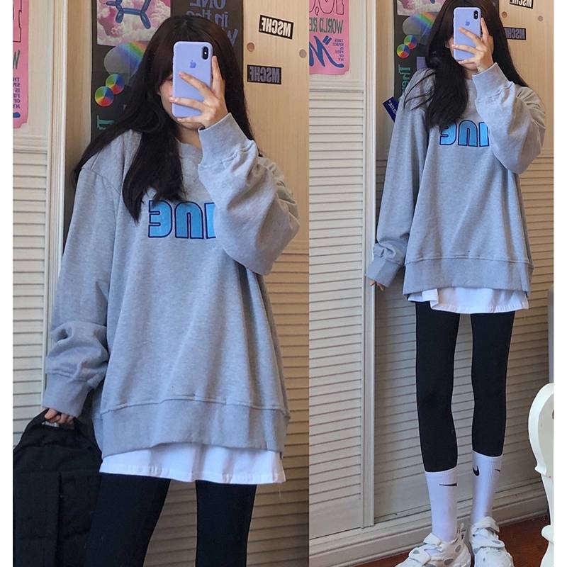 假两件卫衣女炸街秋冬韩版宽松百搭设计感小众上衣中长款懒惰外套