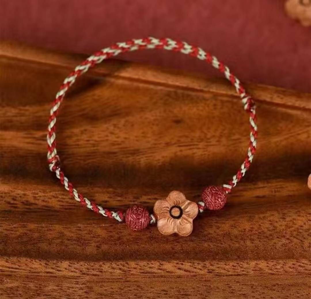 红色幸运桃花天然桃木手工编织手链