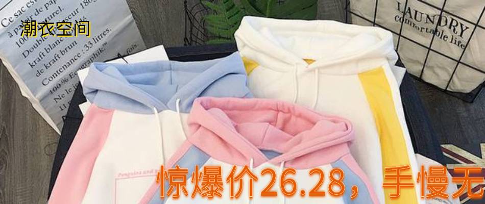2019秋季新款ins韩版宽松纯色连帽系带短款全棉卫衣