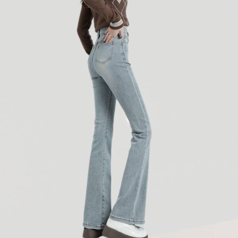 2023年早春设计款高腰修身显瘦百搭小个子款韩版弹力微喇包邮牛仔裤