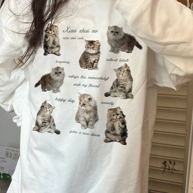 2023年早春纯棉新款无帽卫衣女秋冬款卡通印花百搭宽松时髦上衣