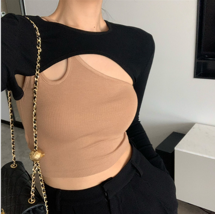 FFU 短款上衣女2020年新款流行韩版夏季防晒叠穿长袖修身套头罩衫