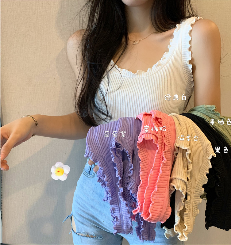 2021年夏季新款修身内搭背心木耳边网红吊带上衣女白色打底衫外穿