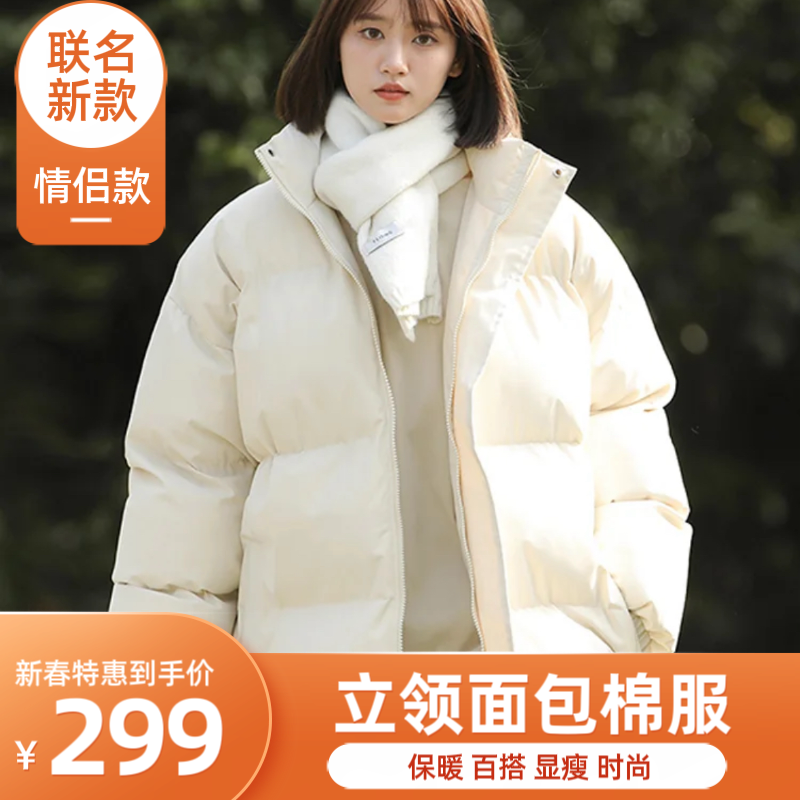 2019冬季新款狐狸大毛领水洗短款棉服女牛仔棉衣女毛绒大码外套