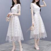 裙子女夏仙女裙2022新款超仙收腰显瘦气质网纱刺绣碎花雪纺连衣裙