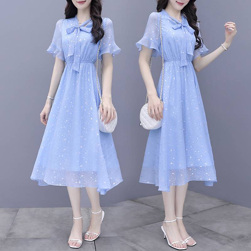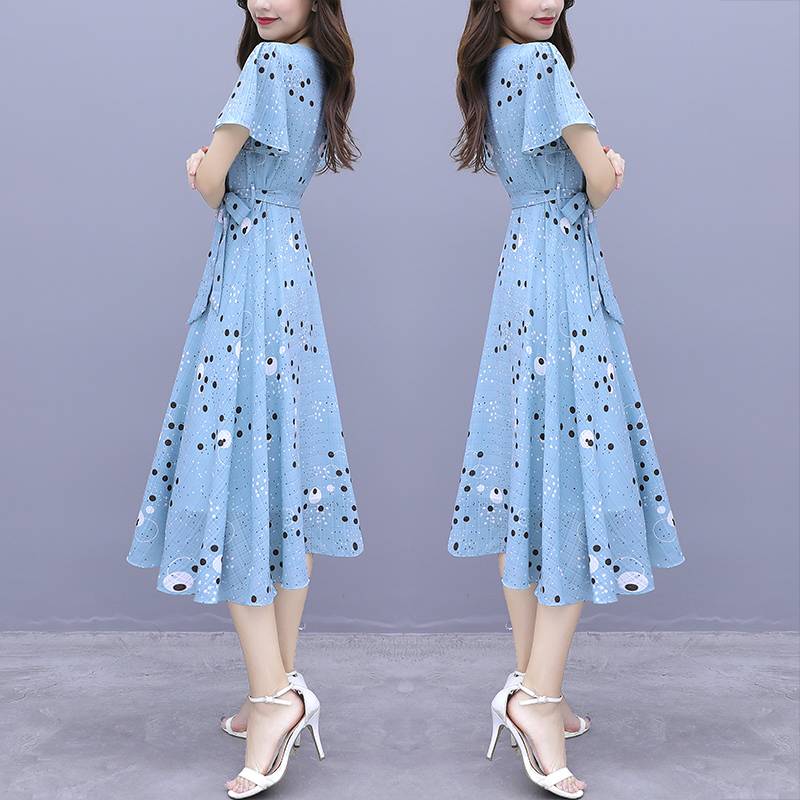 夏季2022新款法式高腰波点收腰显瘦气质别致时髦甜美雪纺连衣裙