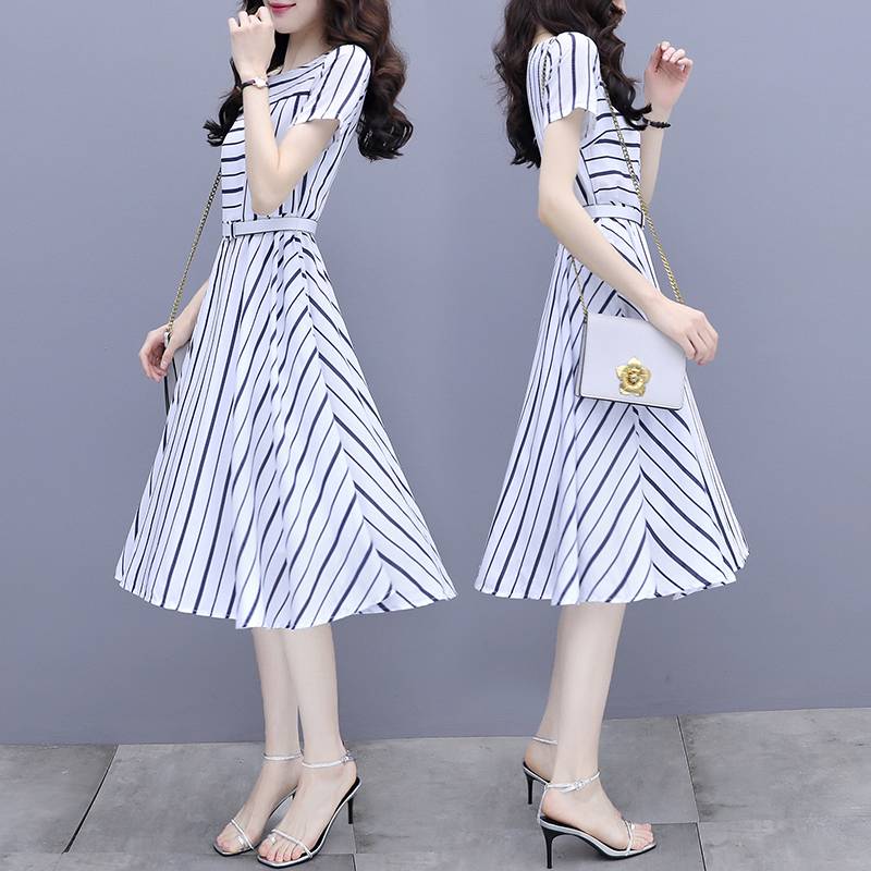 赫本风连衣裙女夏2022年新款潮女装气质显瘦条纹碎花仙女连衣裙