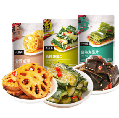 小胡鸭香辣卤藕黄瓜海带藕丁玉米粒土豆素食零食小吃散装称重500g