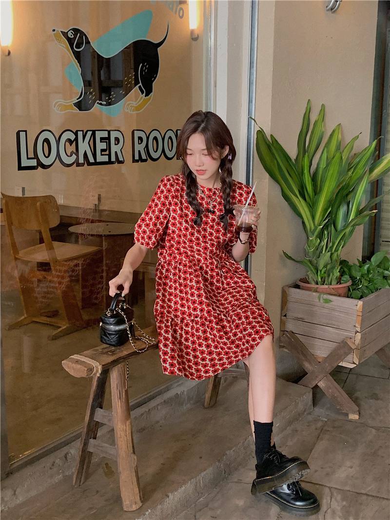 碎花连衣裙 2020夏季新款品牌女装荷叶袖印花气质淑女大摆裙