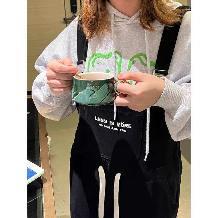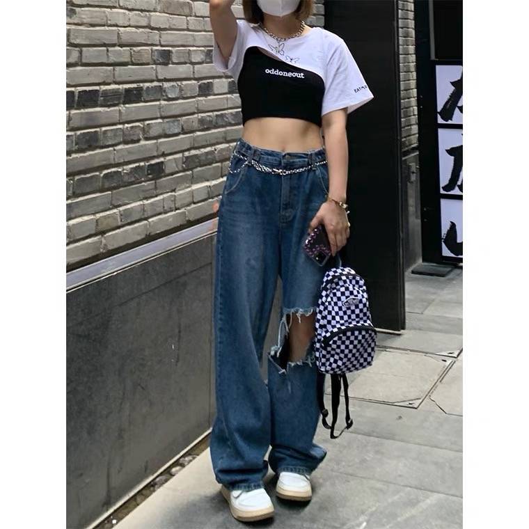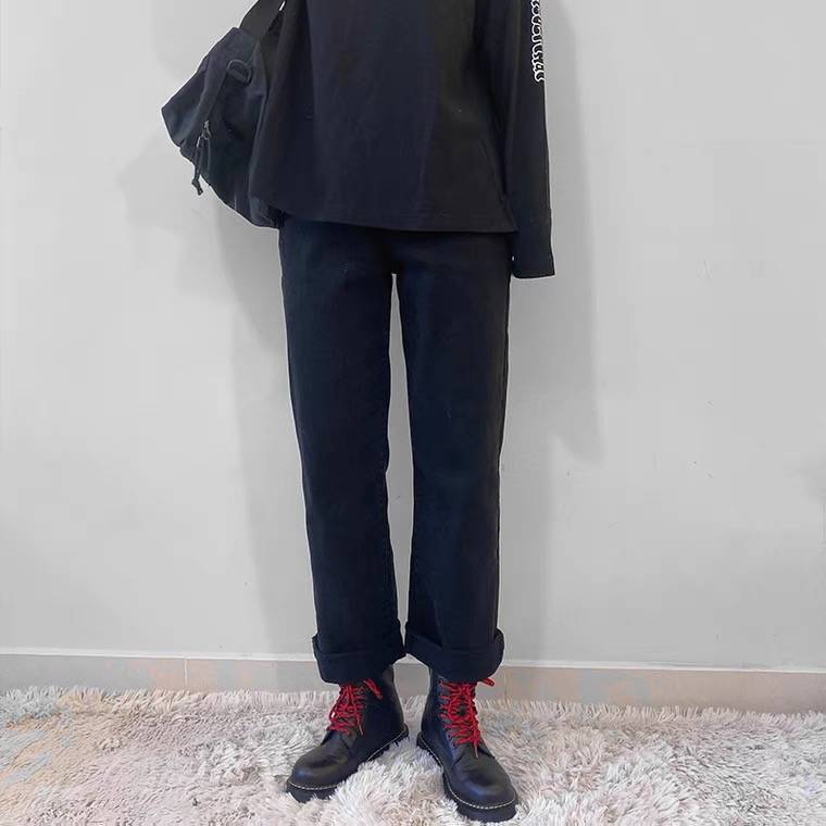 复古黑灰色高腰显瘦牛仔直筒裤牛仔裤