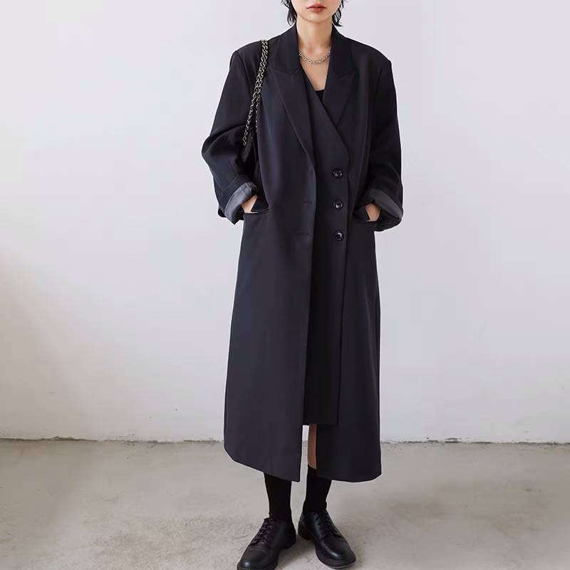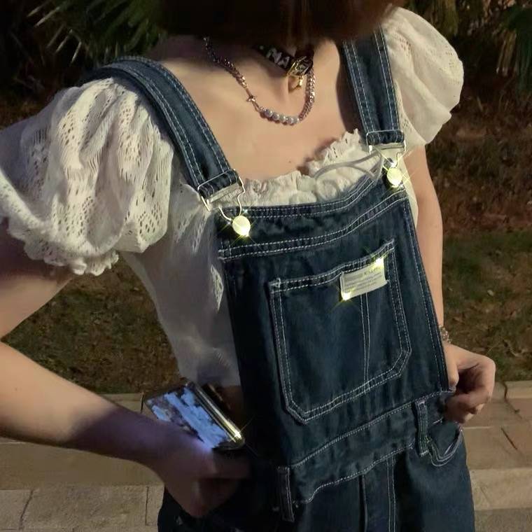 梨型少女感爆蓬春季深蓝色复古背带阔腿牛仔背带长裤