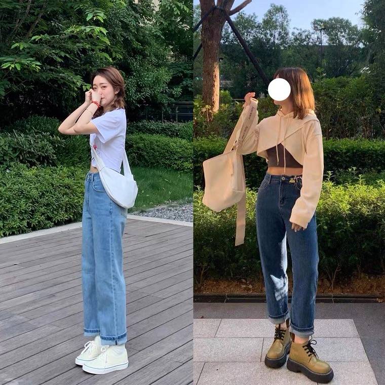 质感十足蓝色柔软梨形显瘦直筒休闲蓝色牛仔裤
