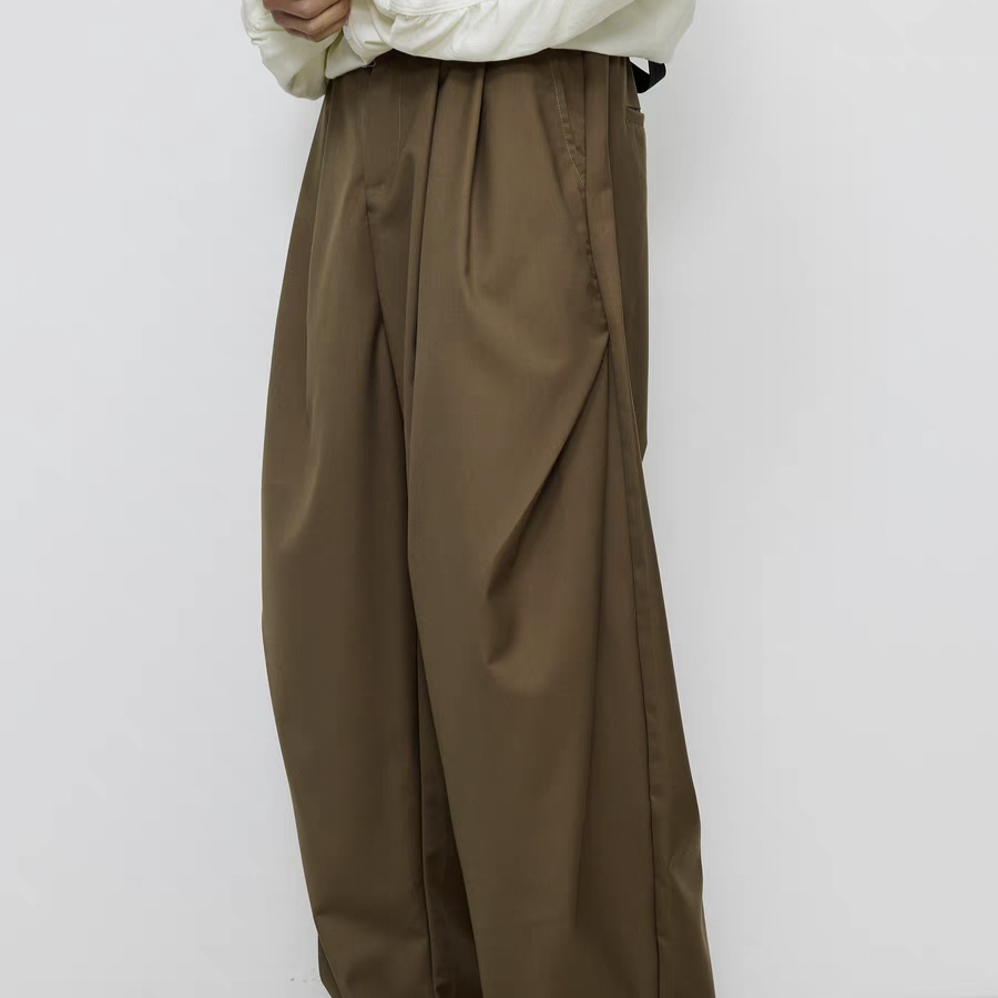 侧边双斜褶 光泽质感 飘逸阔腿微锥宽松休闲长西裤