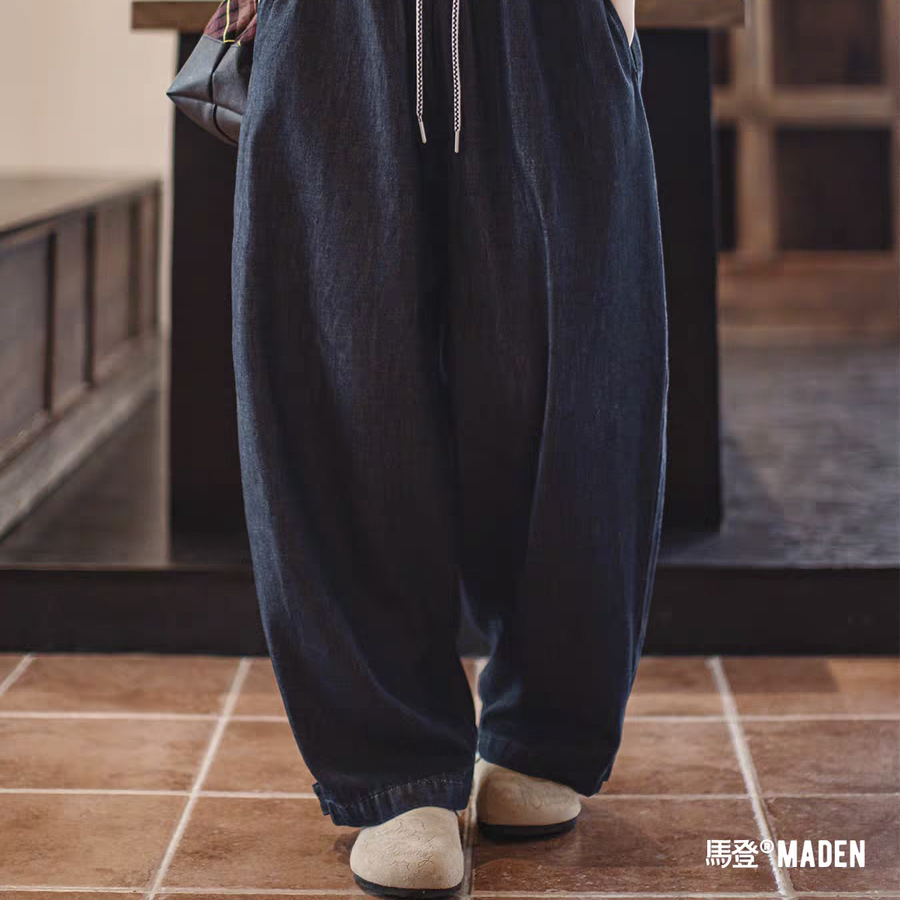 复古冰皮香蕉牛仔裤凉感柔软面料通勤萝卜裤松紧系腰裤子