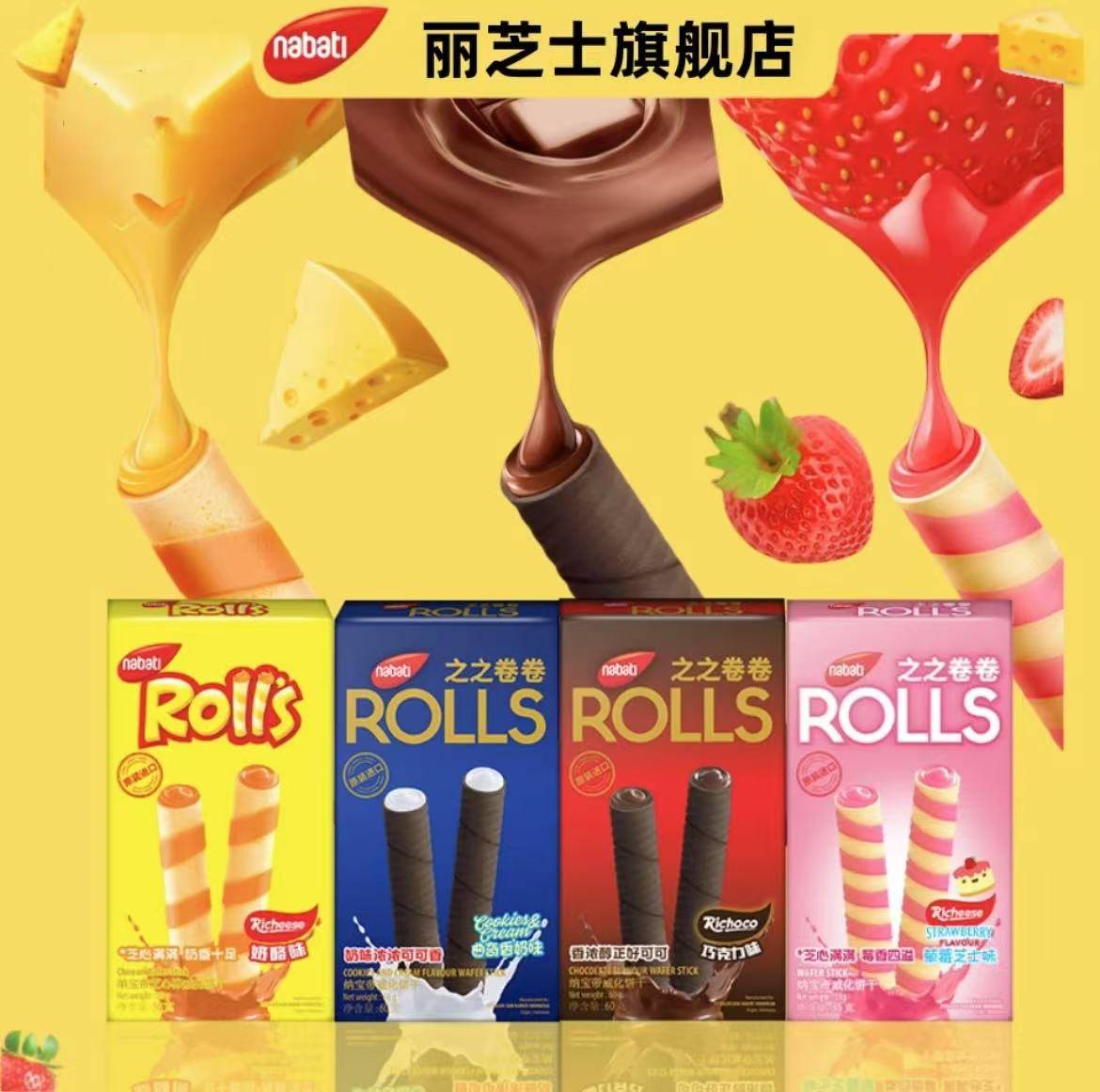 [酥脆可口]纳宝帝丽巧克力之之卷卷60g奶酪芝士棒长条注心卷休闲零食