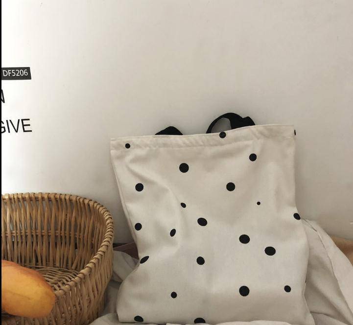 韩系chic可爱波点百搭单肩帆布包购物袋手提学生书包女