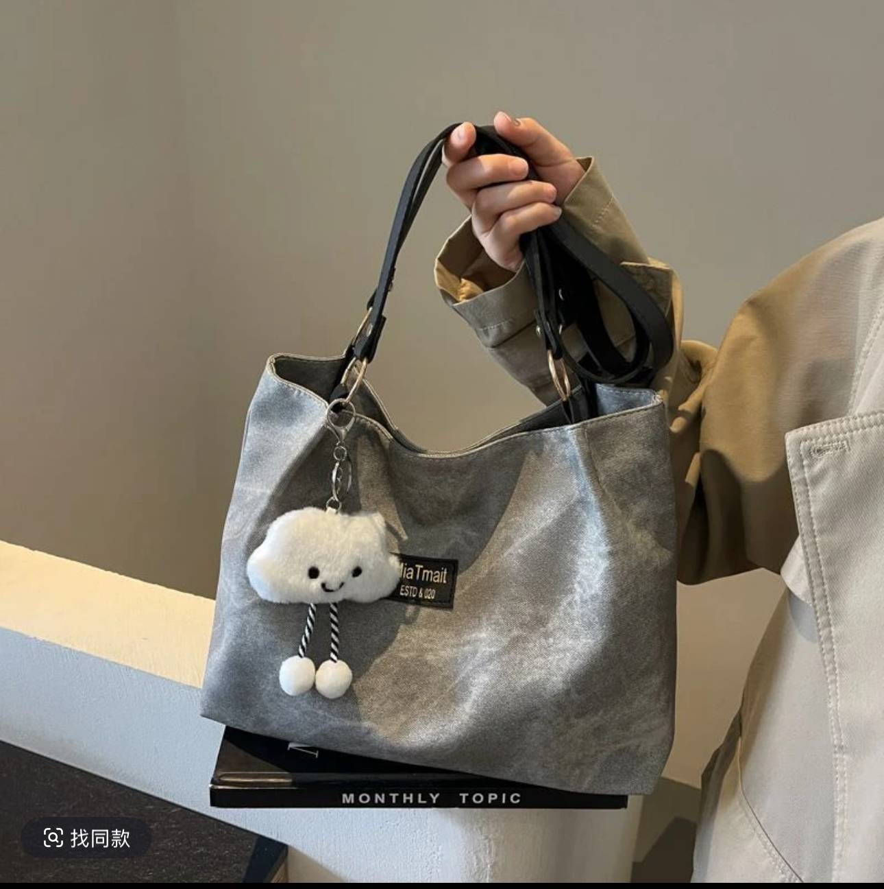 原创大学生高级感单肩大包包女2024新款大容量通勤小众设计托特包