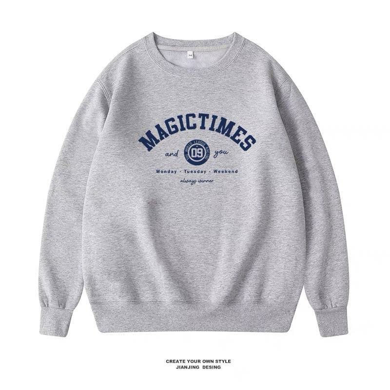 美式卫衣男秋冬季无帽长袖潮流ins休闲宽松百搭上衣加绒加厚圆领
