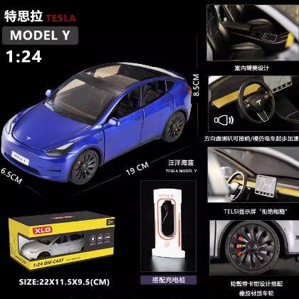 新款1:24特斯拉MODELY仿真合金汽车模型车内摆件声光男孩玩具车