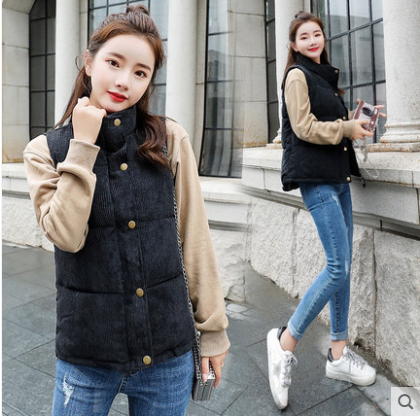 韩版羽绒棉马甲女修身短款保暖灯芯绒棉服背心潮