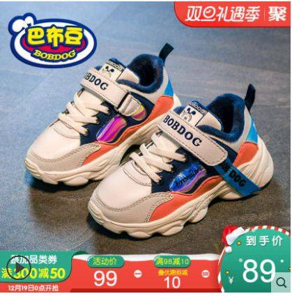巴布豆旗舰店官方旗舰儿童鞋子2019新款秋冬加绒二棉鞋男童运动鞋