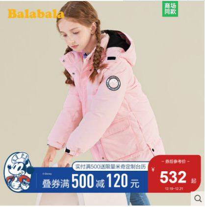 【门店发货】巴拉巴拉女童羽绒服外套2019新款秋冬中大童儿童