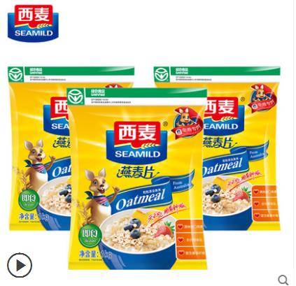 西麦 纯燕麦片1000gX3袋装即食免煮谷物不添加蔗糖营养冲饮早餐