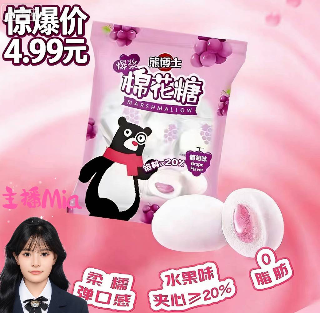 好吃休闲零食徐福记熊博士爆浆棉花糖充气糖果