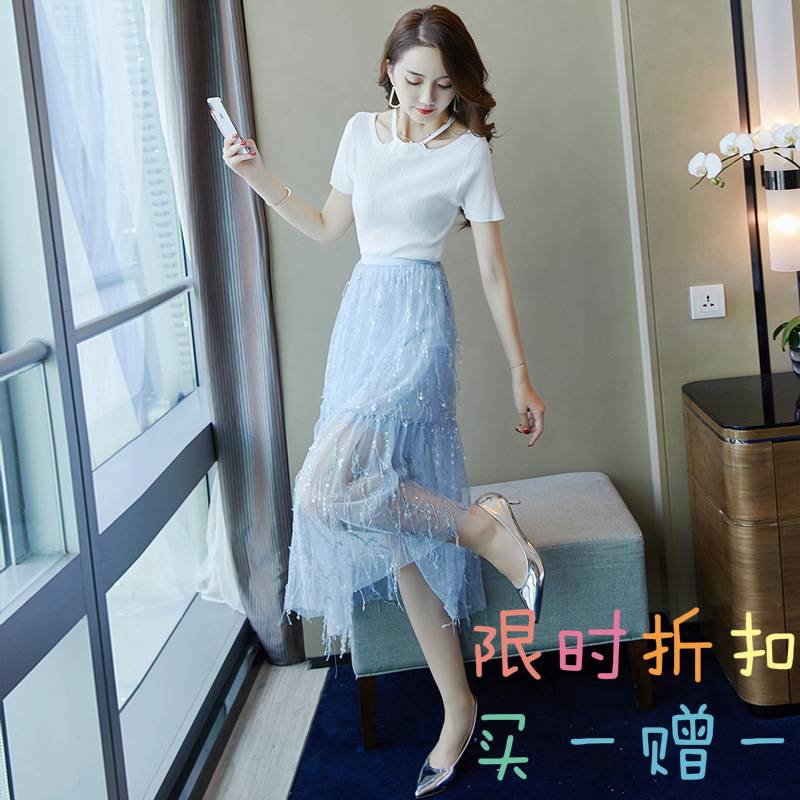 爆款2019夏季新款女装时尚清新甜美不规则半身裙