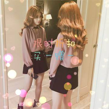 2018春装新款时尚韩版V领挂脖雪纺衬衫上衣女装宽松大码长袖衬衣