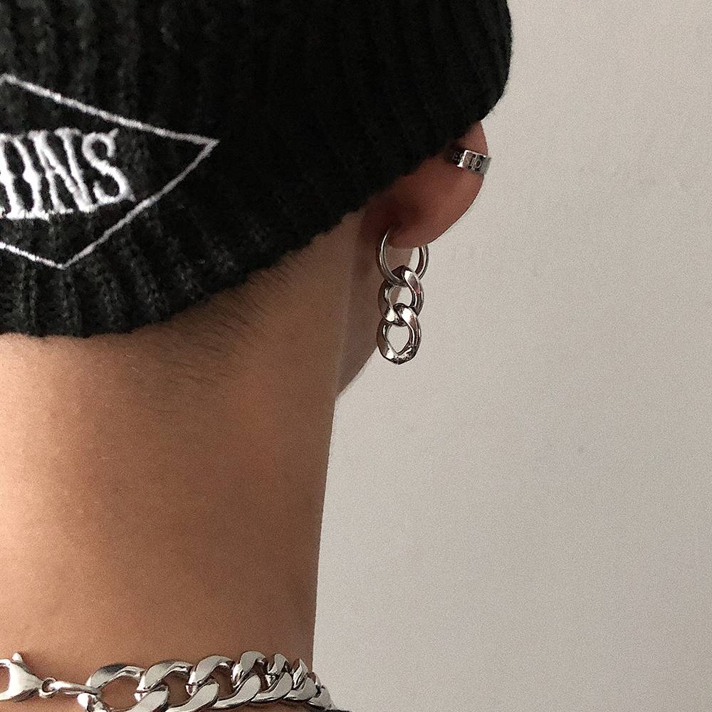 SAZ 欧美冷淡风少年团同款钛钢链条粗圈耳环2021新款不掉色耳钉男
