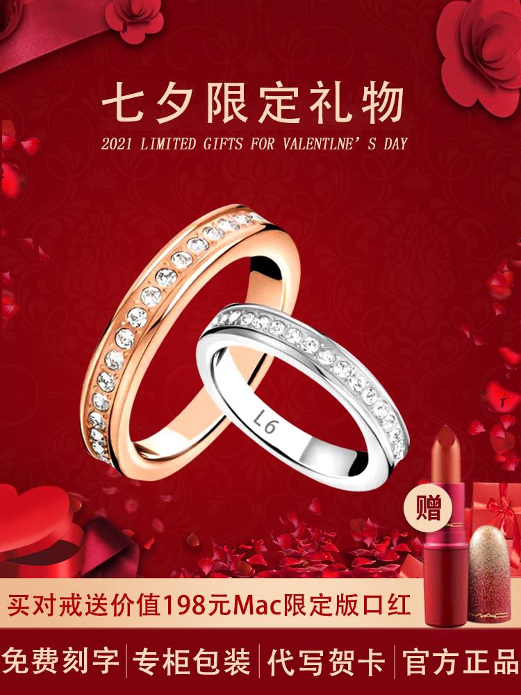 CK戒指轻奢小众官网正品满天星小ck情侣对戒七夕情人节礼物送女友
