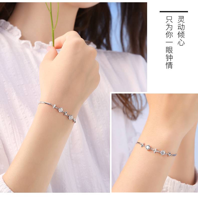 KADER 四叶草女手链女生夏手镯纯银情人节七夕礼物送女友生日礼物