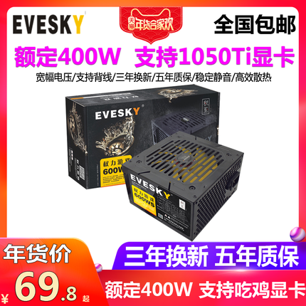 EVESKY积至电脑电源台式600WS电脑主机电源额定400W显卡供电