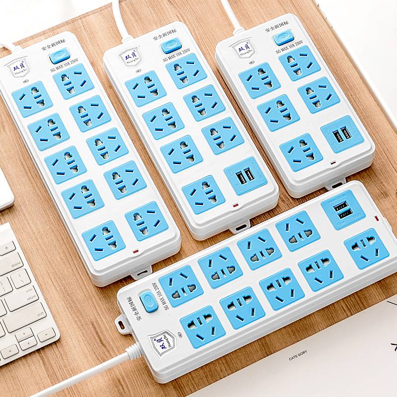 公牛抗电涌防雷插座带线3m5米多功能黑色电脑多孔插排插板接线板