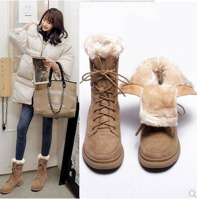 新款皮毛一体靴女冬季加绒加厚保暖靴子马丁靴