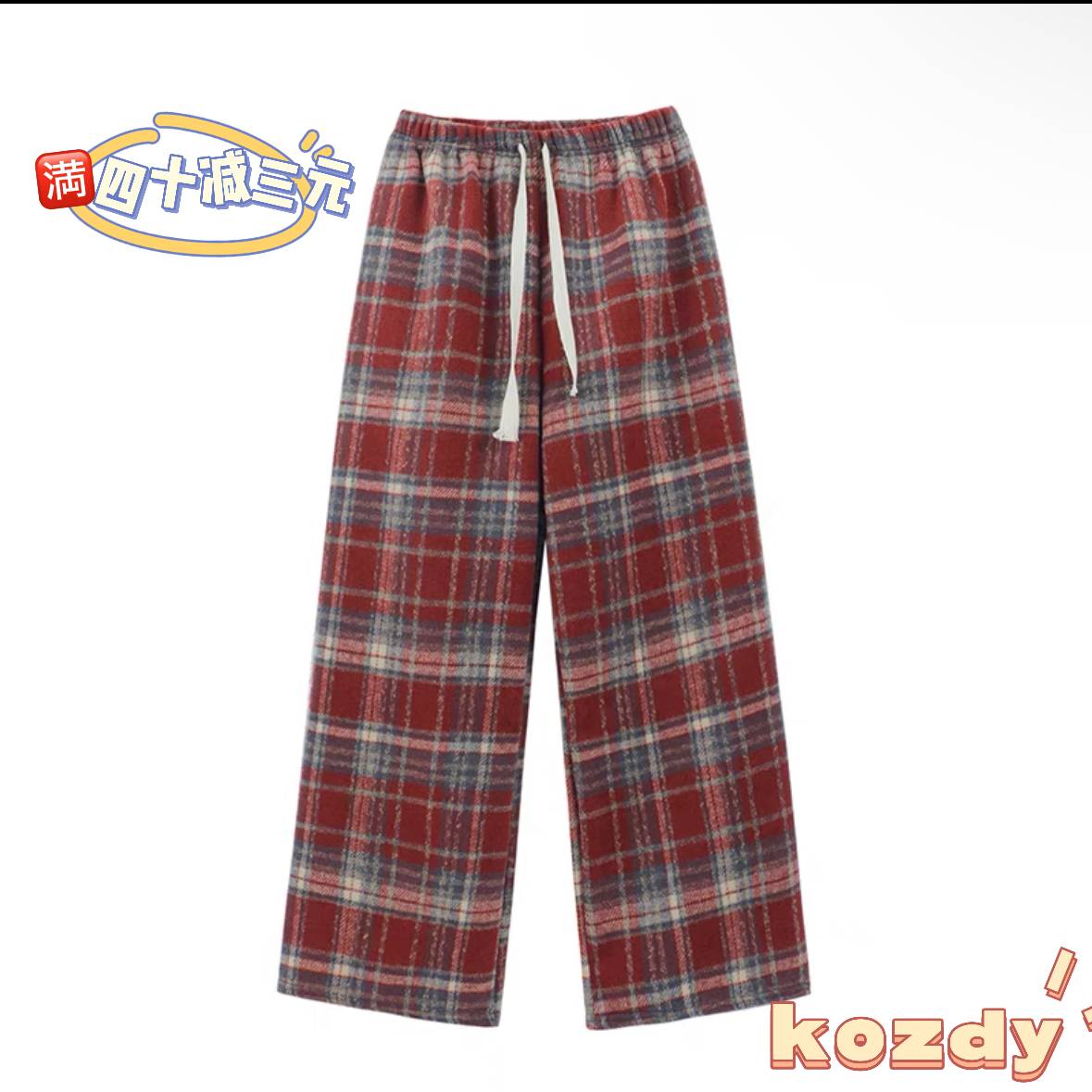 KOZDY家 韩系加厚格子呢子裤 冬季高腰垂感休闲直筒长裤阔腿裤