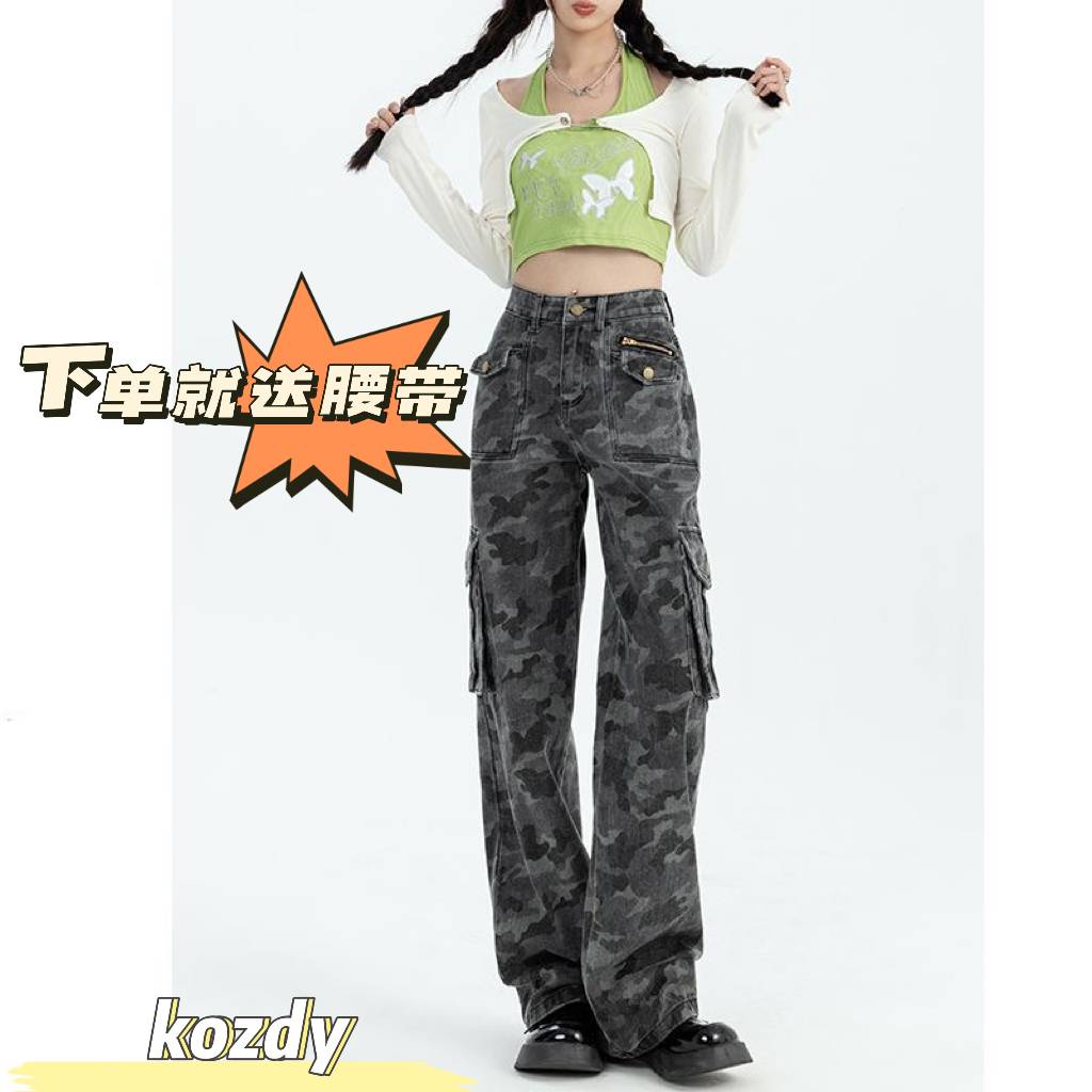 KOZDY家 迷彩工装牛仔裤女辣妹高街新款高腰阔腿宽松显瘦ins风
