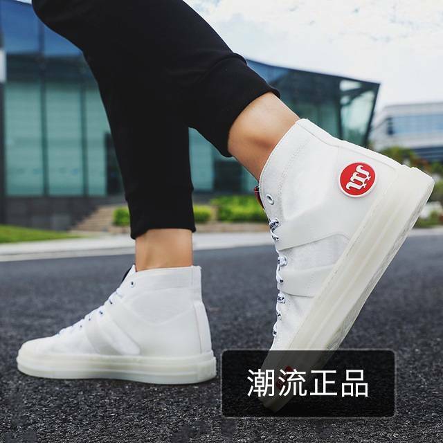 爆款春秋高帮板鞋韩版潮流果冻底水晶男鞋学生百搭休闲帆布鞋
