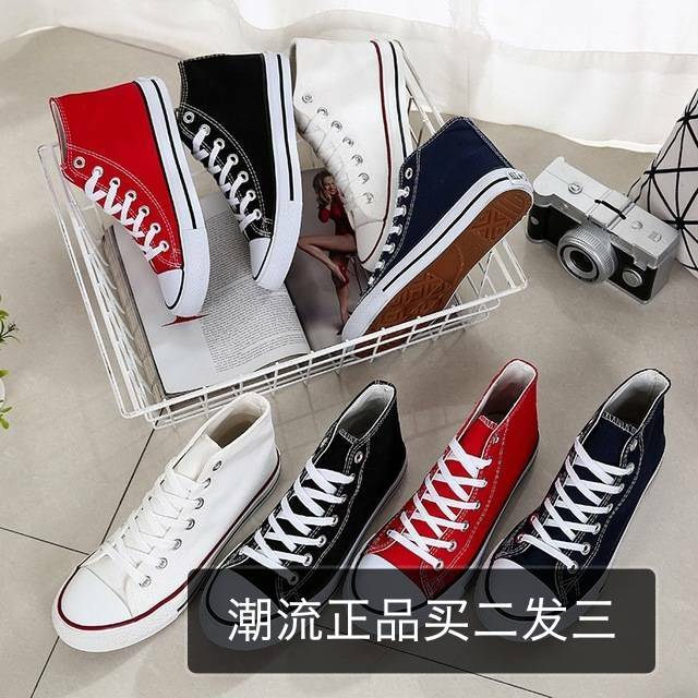 新款经典情侣高帮帆布鞋男女基本款硫化鞋韩版透气学生布鞋